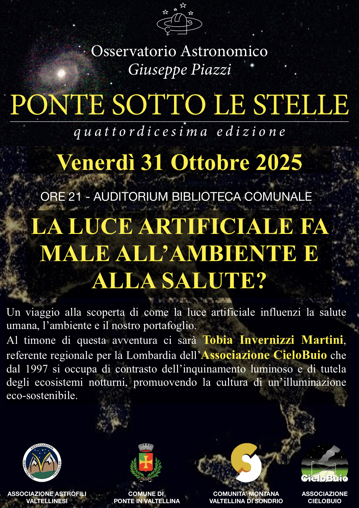 31 ottobre 2025 – Conferenza pubblica sugli effetti della luce artificiale a Ponte in Valtellina (SO)